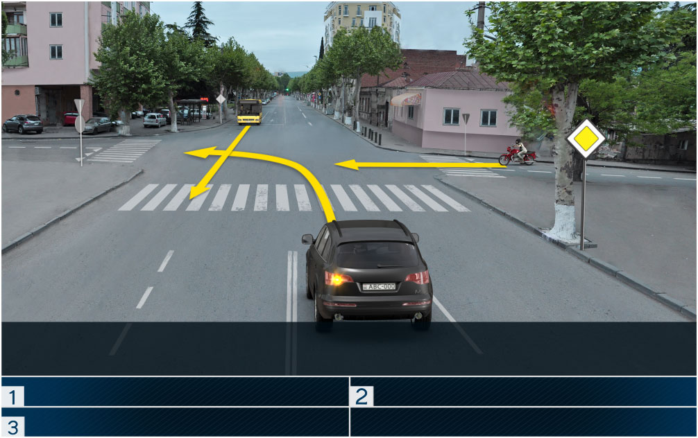 „საგზაო მოძრაობის შესახებ“ საქართველოს კანონის 36-ე მუხლის მე-4 პუნქტის „ა“ ქვეპუნქტის თანახმად, არარეგულირებულ გზაჯვარედინზე, არათანაბარმნიშვნელოვანი გზების გადაკვეთაზე მეორეხარისხოვან გზაზე მოძრავი სატრანსპორტო საშუალების მძღოლი ვალდებულია გზა დაუთმოს მთავარი გზიდან მოახლოებულ სატრანსპორტო საშუალებას, მიუხედავად მისი შემდგომი მოძრაობის მიმართულებისა.